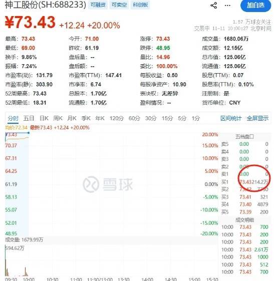 随后,神工股份在短暂打开涨停板后又再度封上涨停,截至收盘神工,报73.43元/股,总市值125.12亿元,单日成交16.47亿元。