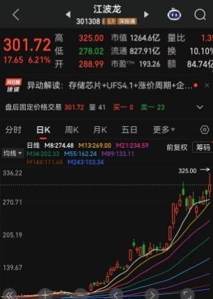 在神工股份强势带动下,此前屡创历史新高的三大存储妖股江波龙、德明利、香农芯创盘中再创历史新高,其中江波龙盘中一度大涨14%,触及325元/股历史高点,德明利一度涨超5%,冲至298.33元/股历史高点,距离300元大关一步之遥。香农芯创也越过200整数关口,冲高至204.57元/股历史高点。